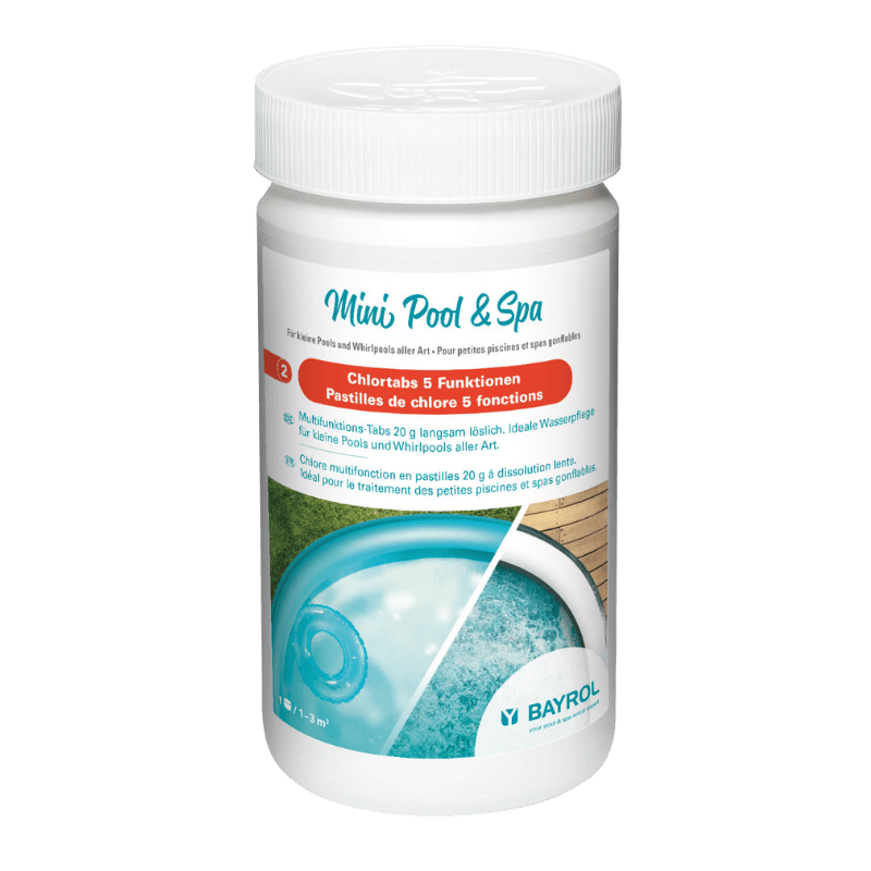 Le Chlore 5 fonctions Bayrol en pastilles de 20g est la solution complète pour un entretien facile et efficace de votre spa ou piscine. Formulé pour désinfecter, stabiliser le pH, éliminer les algues, clarifier l’eau et protéger contre la corrosion, ce produit offre un traitement polyvalent et pratique pour une eau propre et saine. Grâce à ses pastilles concentrées, le dosage est simple et précis, vous garantissant un confort optimal et sécurisé pour vos baignades.